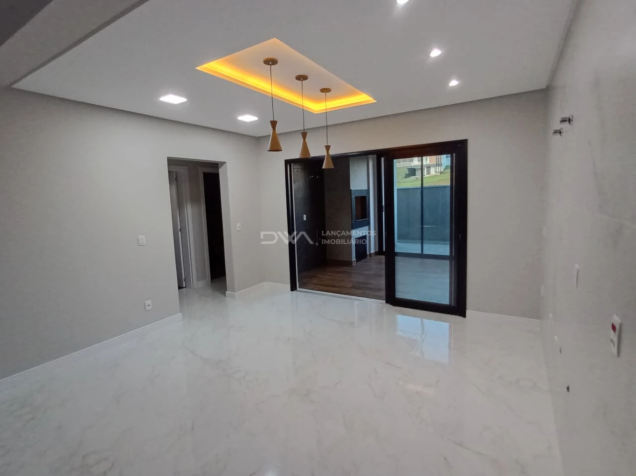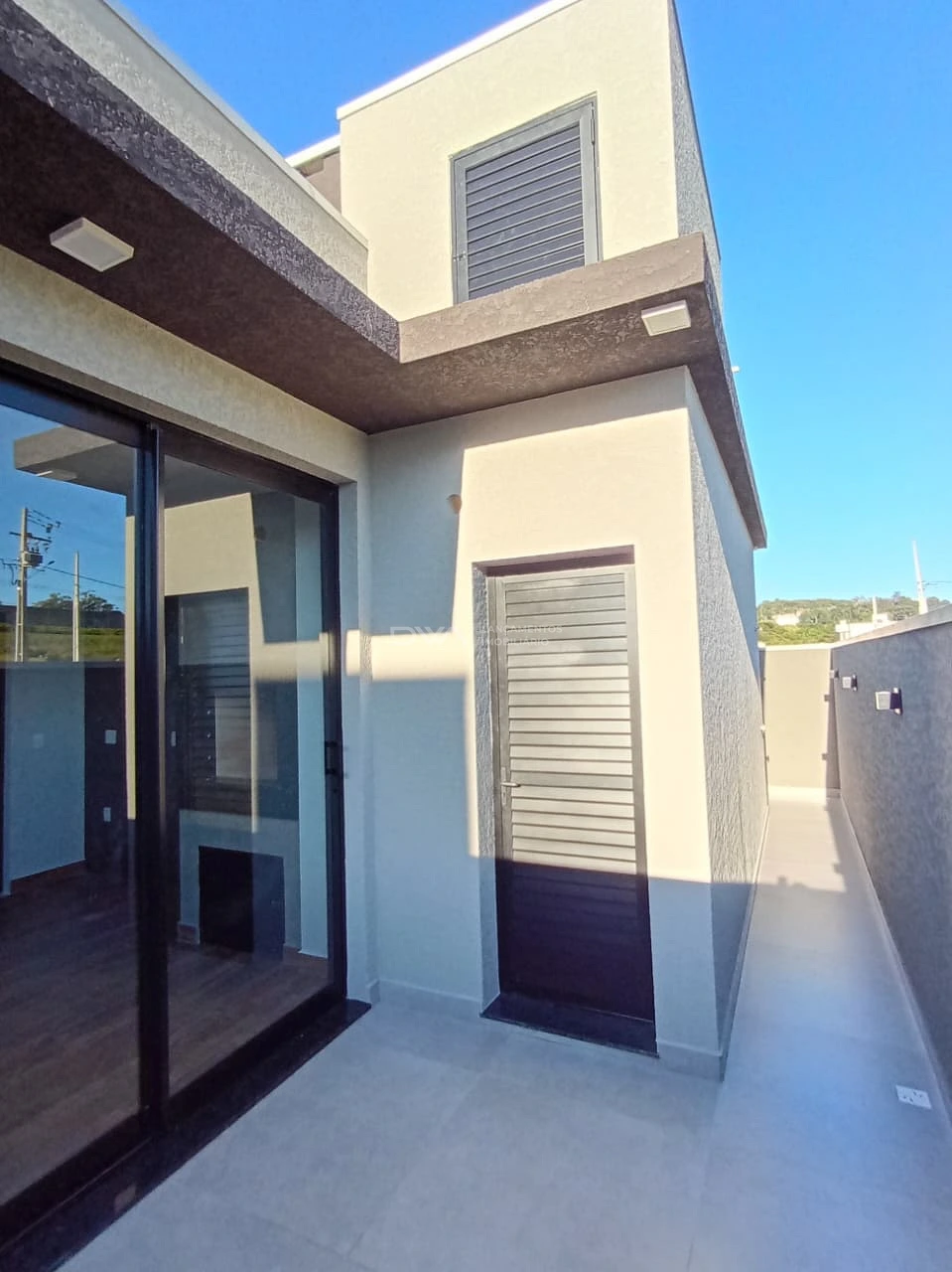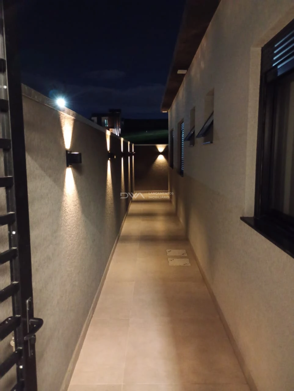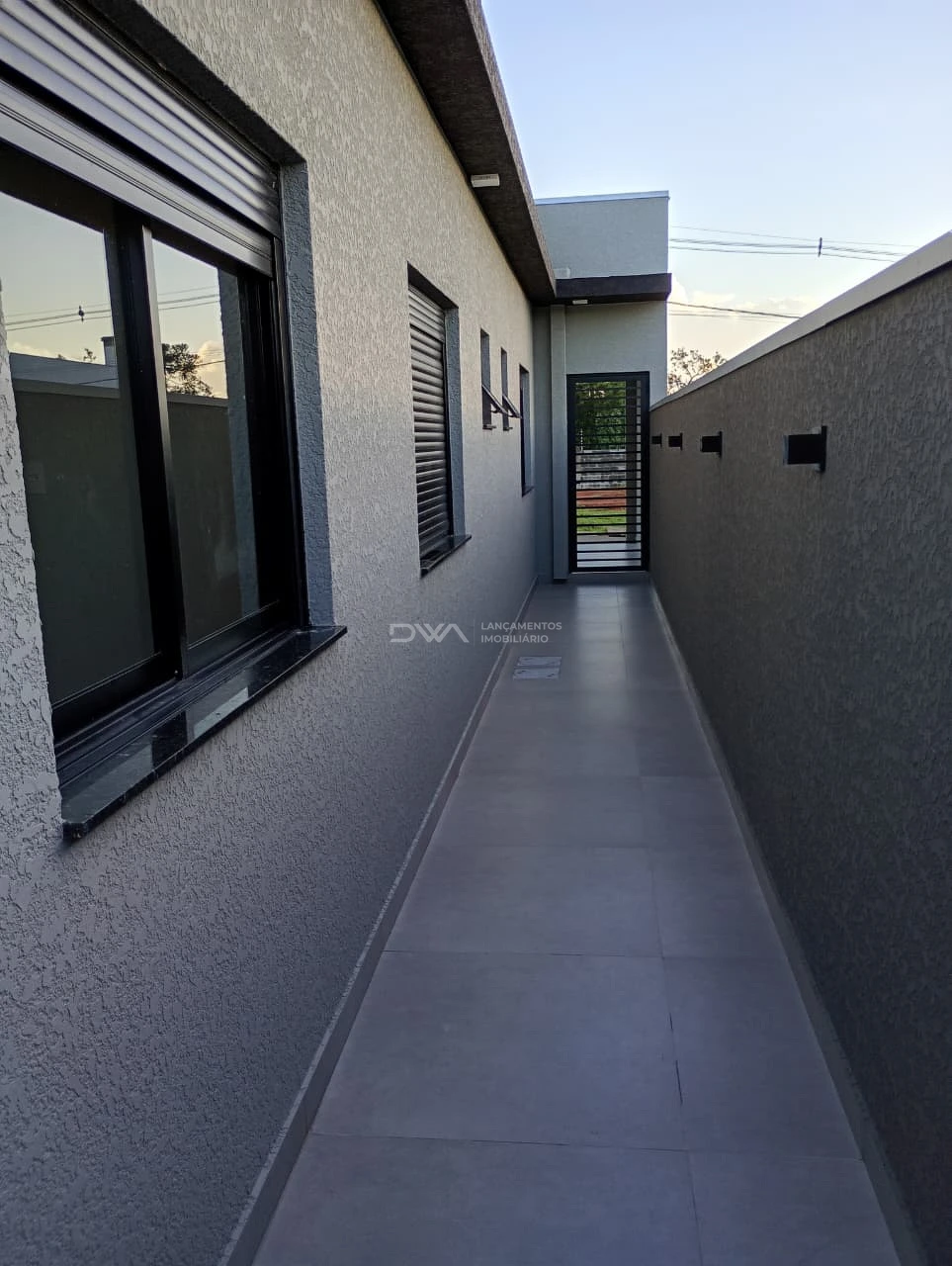 Sala, Copa e Cozinha integrados, rebaixo em gesso, pé direito duplo, garagem coberta para dois carros, três quartos, sendo uma suíte, área gourmet com churrasqueira, lavanderia, banheiro e jardim. Aquecimento a gás nos chuveiros e todas torneiras. Iluminação em LED especial e janelas automatizadas nos quartos. Preparação para ar condicionado.